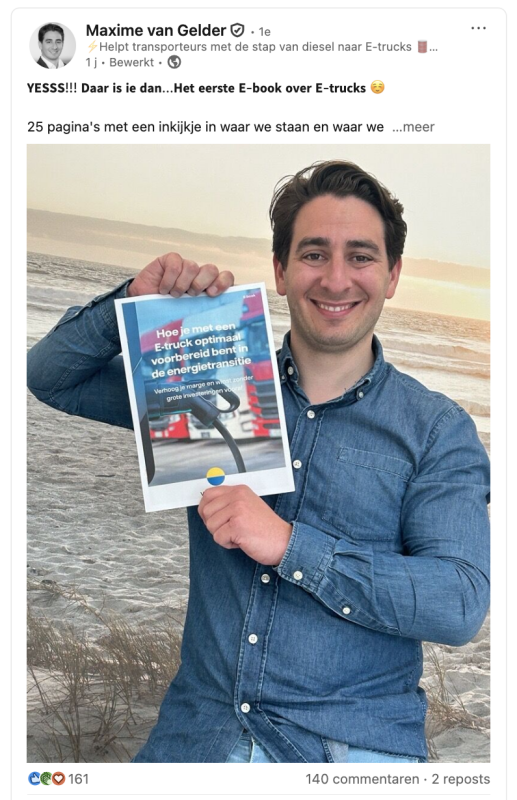 Vattenfall liet Maxim, hun accountmanager, zichtbaar zijn als het gezicht achter het e-book. Hij postte regelmatig waardevolle content op LinkedIn die direct aansloot bij de vragen van hun doelgroep.
